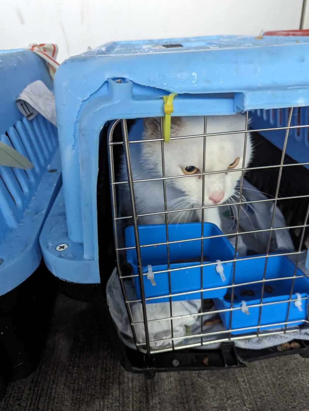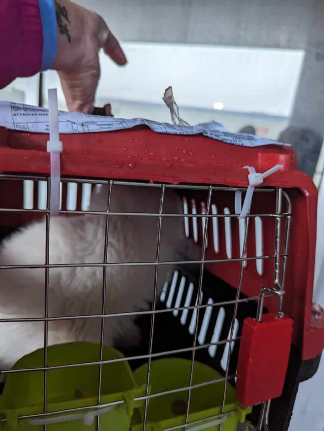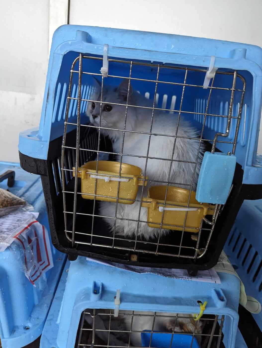 After the cats arrived at John F. Kennedy International Airport in New York City, EGYPTAIR staffers left the damaged crates exposed to intense rain—resulting in cold, wet cats; flooded food bowls; and destroyed paperwork.