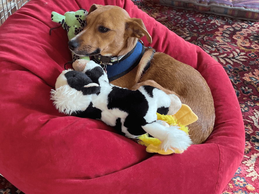After we spayed Bella—who had been kept outside with a three-sided structure that provided little if any protection from the elements—we provided her with a custom-made wooden doghouse.