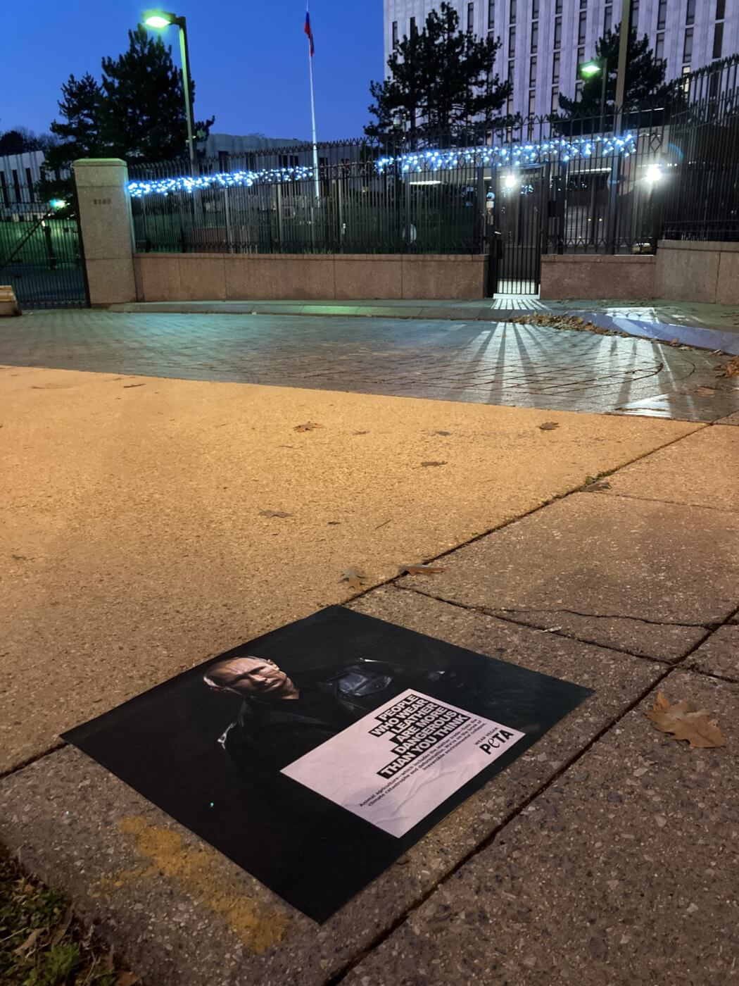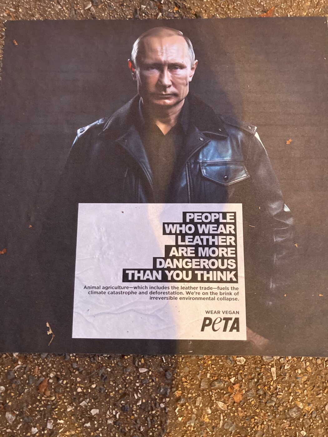 The world is alarmed as Vladimir Putin and Kim Jong Un ramp up an actual war and talk of war, respectively. So PETA is flyposting the area outside the United Nations Headquarters in Midtown Manhattan, New York, with messages about just one way to avoid being like them—by not wearing leather.