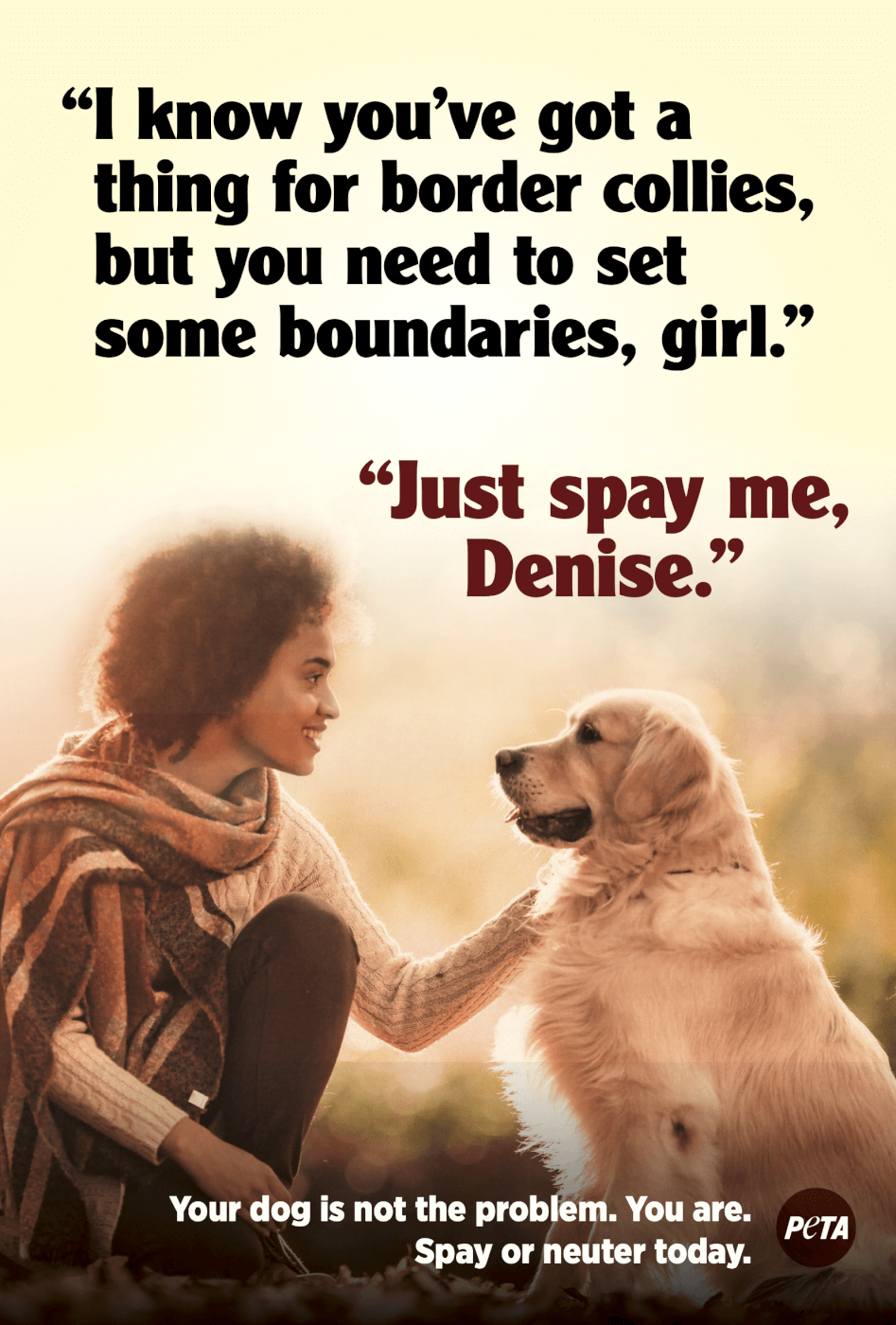 PETA’s ad campaign serves as a reminder that the solution to the ongoing companion animal overpopulation crisis is simple: Just have them spayed and neutered.