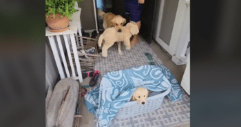 Golden Retriever Obsessed with Stuffed Dog Gets the Ultimate Surprise—A Real Puppy!