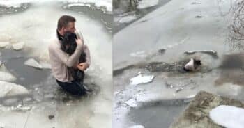 Heroic Man Plunges into Icy Water to Rescue Stranger’s Drowning Dog