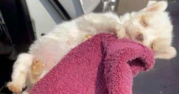 Woman Cradles Newborn Pup Dying On Hot Pavement, Praying ‘Love Sparks Life’