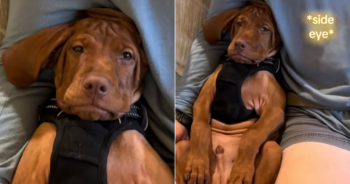 When Otis, a 12-week-old Hungarian Vizsla puppy, was gently scolded for playfully nibbling on his dad’s hand, he responded in…