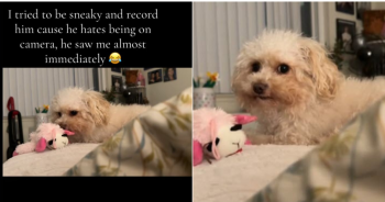 Teddy the dog was having a peaceful moment with his favorite plush toy—until he spotted something suspicious: a camera pointed…
