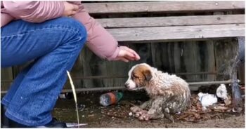 Woman Held Back Sobs As She Reached Out To Pup Caked In Mud And Waste