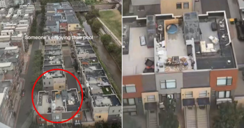 Man Notices Golden Retriever Enjoying Pool Below, But Then He Zooms In