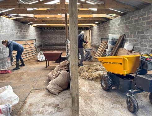 Our morning was spent clearing out the sheep shed getting it ready for winter. Like I said yesterday, hard work…